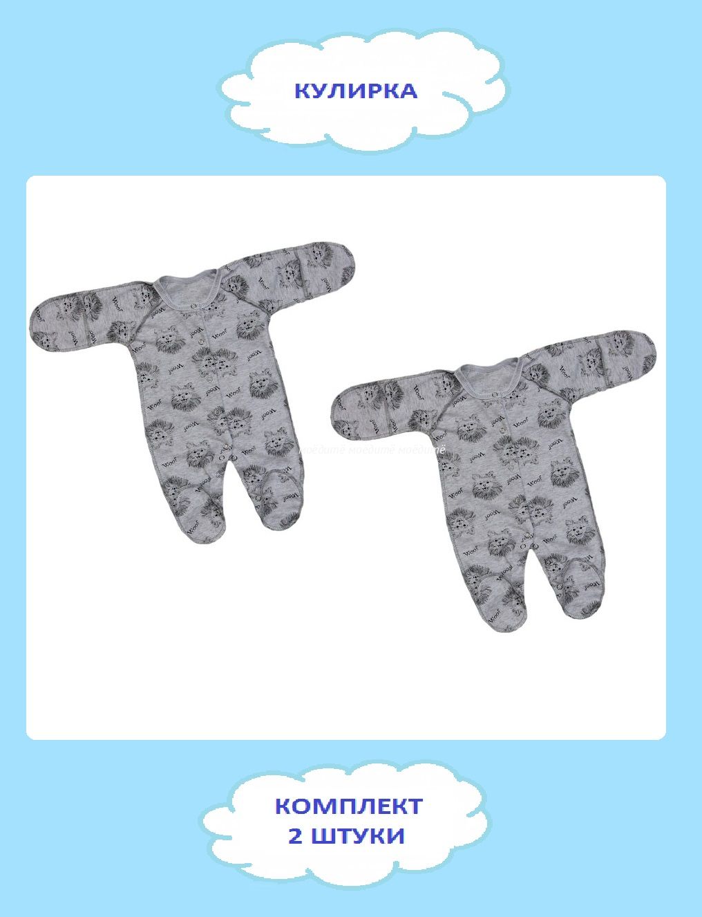 "МоёДитё" комбинезон со швами наружу "Гардения" КК007 "Собачки" серый в Симферополе