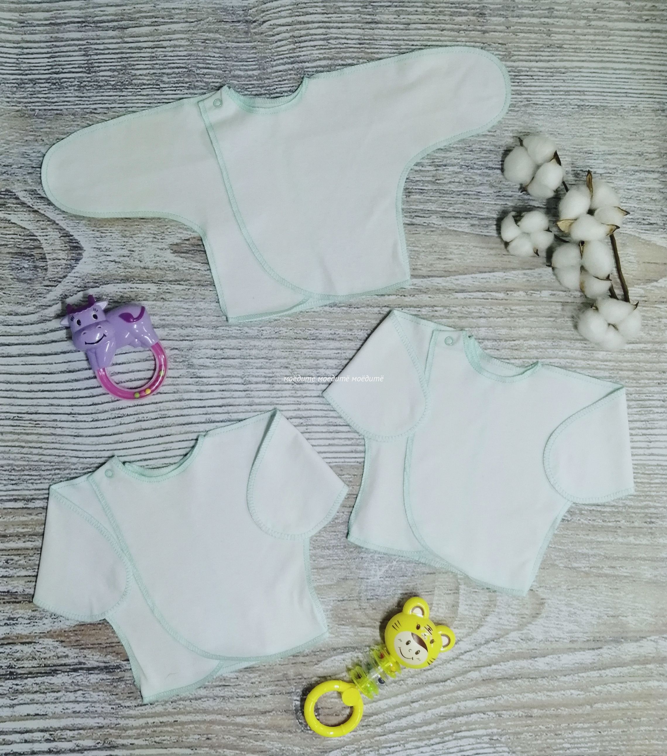 "МоёДитё" распашонка "Нарядная" белая + мята РК003 "Гардения" для новорожденных в Симферополе